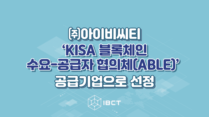 IBCT, ‘KISA 블록체인 수요-공급자 협의체(ABLE)’ 공급기업으로 선정